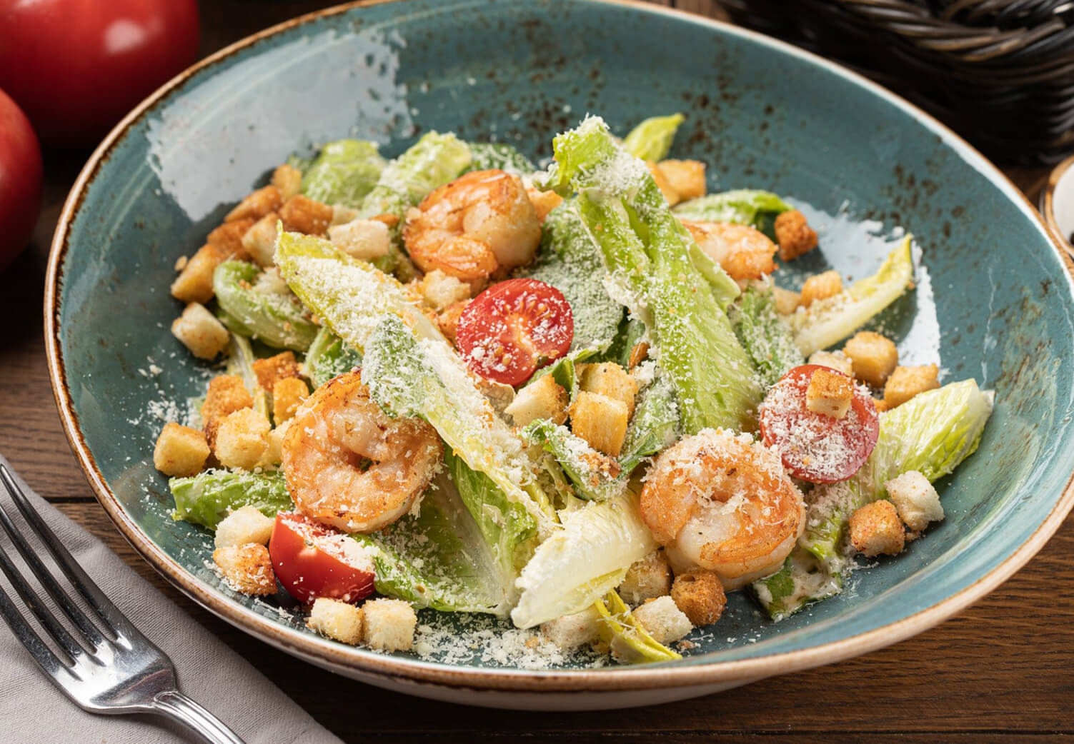 Классический салат из пекинской капусты, черри и сыра. Подаётся с крутонами