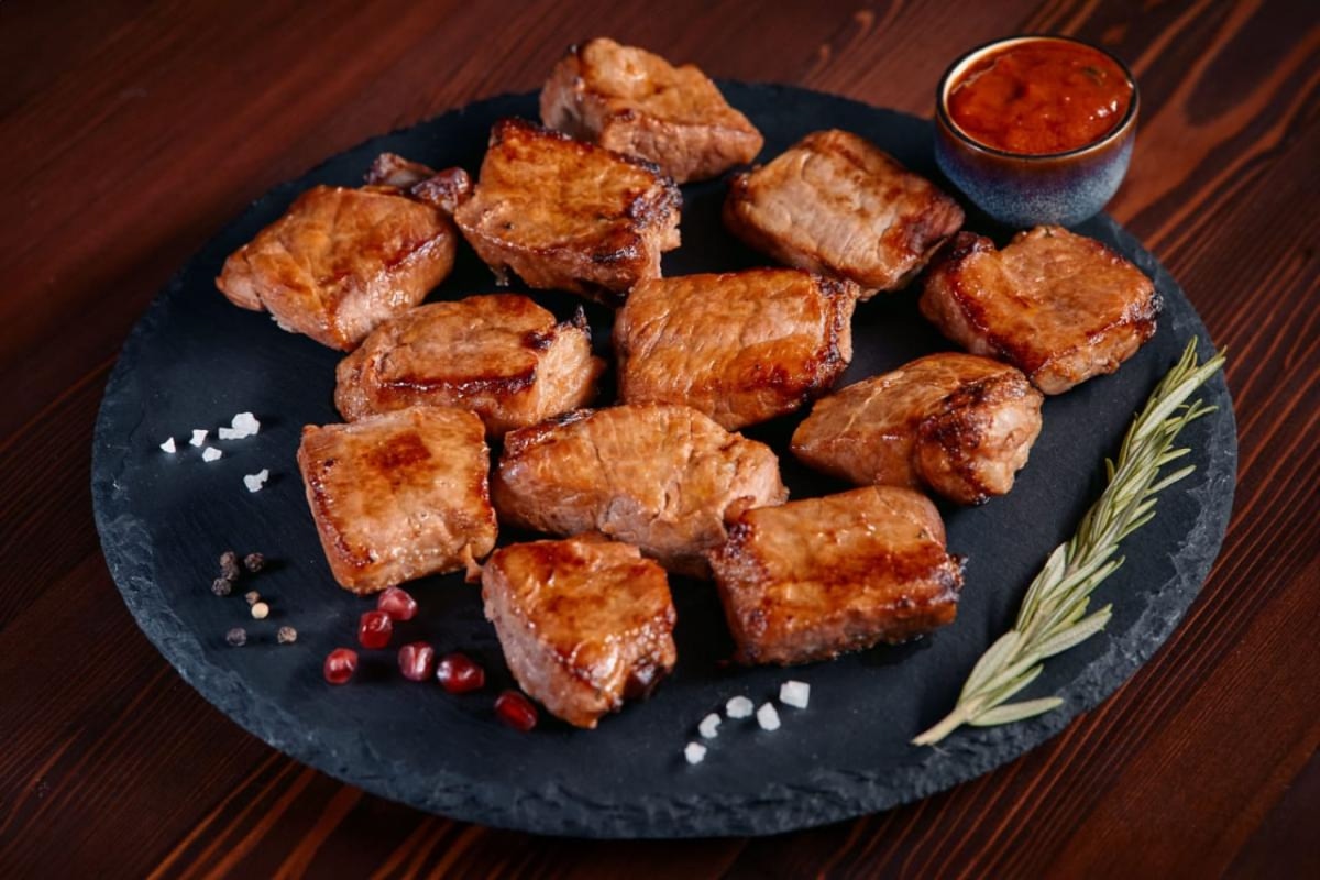Вкусный и нежный шашлык из куриной грудки, маринованной с майонезом, луком и специями .